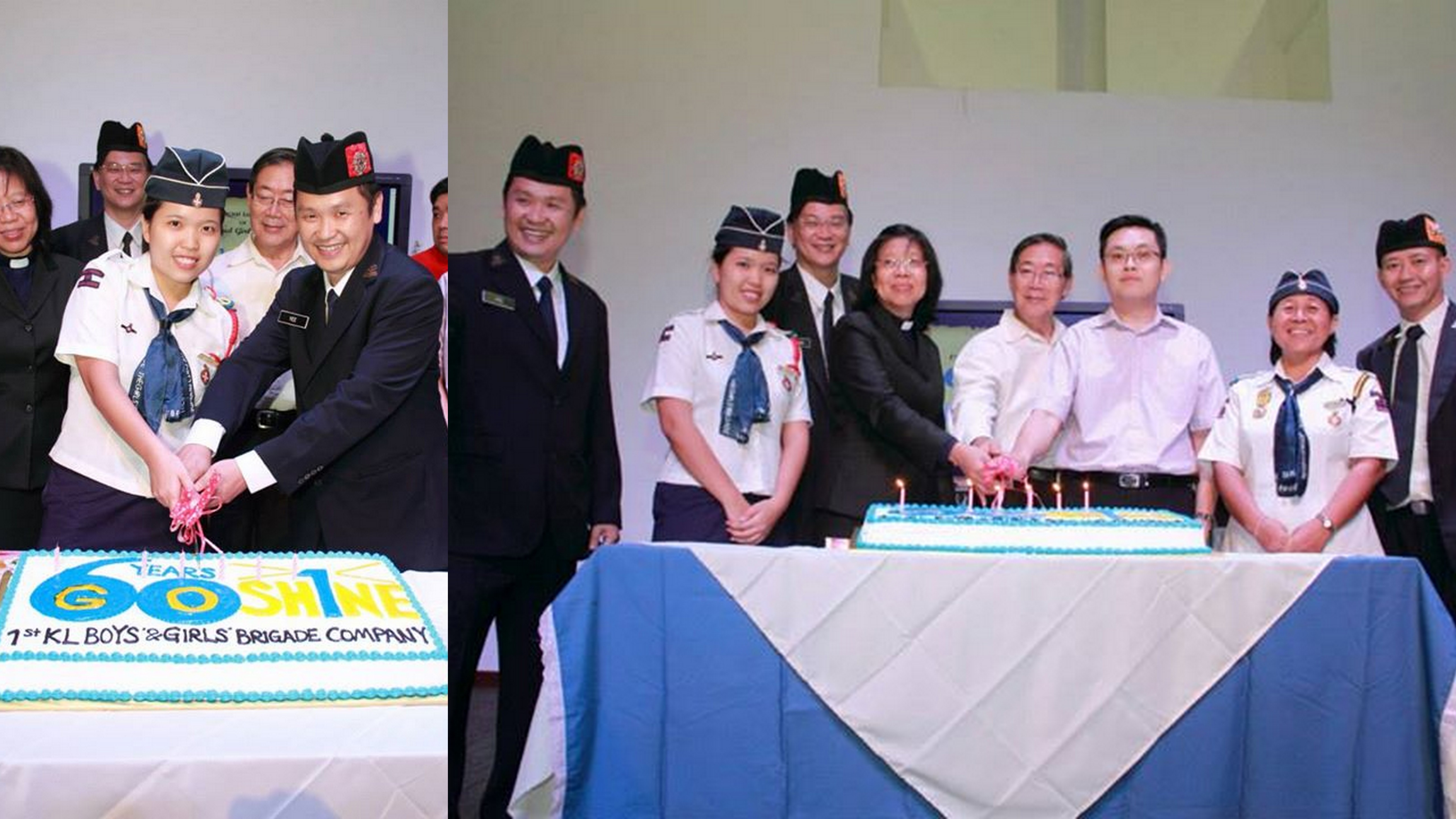 Collages1The emcee of the event, Mr. Yow, invited 6 representatives from different generations in the Boys’ and Girls’ Brigade to swipe the plasma screen television and lastly for Mr. Gary, our church leader to reveal the logo. The 50’s was revealed by Mr. Eddie and the 60’s was by our Advisor, Ms Eunice. Meanwhile, the 70’s was revealed by BB’s honorary captain, Mr Cheong and the 80’s was by Mr. Terence Yap. Not forgetting the 90’s which was revealed by Captain Yee from the BB side and the millennium by Captain Felicia from the GB side. Mr Gary then signed on the plasma screen television for making it official. There was a cake-cutting ceremony to kick off the event too. By 3.40pm, the logo was introduced and the 60th anniversary activities were revealed.