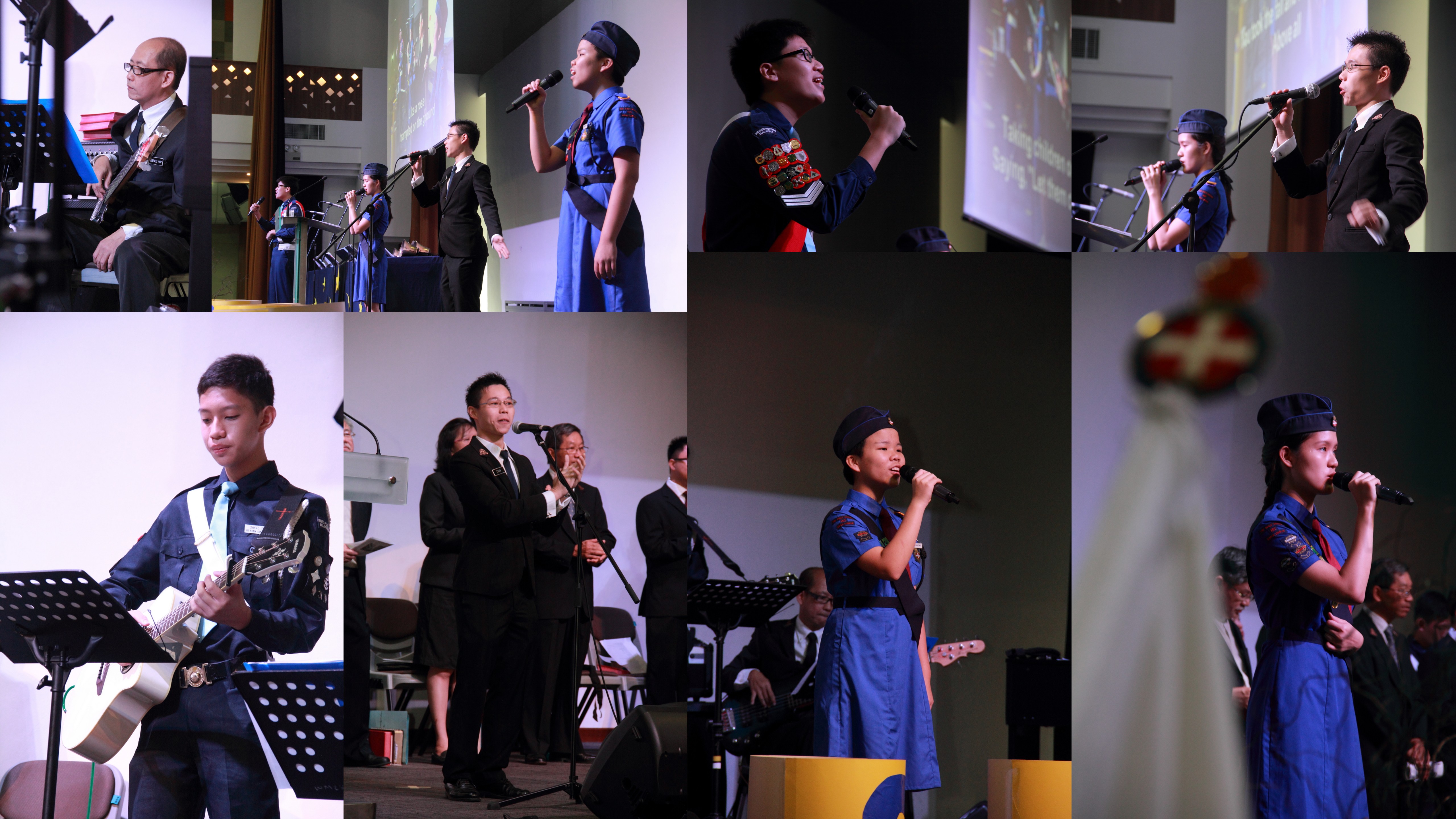 I was a co-leader in the worship team, which was formed by three Officers, two Boys, two Girls, and a former member. To me, it was an honour to serve God on such an important occasion. Nonetheless, I was really nervous and worried when I was chosen to be a part of the worship team. I was thinking to myself: What if I sang off-key? What if I got the lyrics wrong? The thought of standing on stage got more intimidating as the day drew nearer.